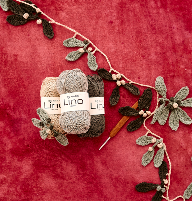 Of course, one of our favourite gift toppers of all time is a handmade Mistletoe Garland. Whether you want to make yards and yards of this free crochet pattern to use as ribbon on all your gifts or just add a few berry and leaf motifs here and there, this pattern is a great go-to (and of course it’s perfect for decorating your home as well. Stock up on BC Garn Lino in the original pattern colours (33 Natural, 60 Pine, and 61 Linen) or pick your own colourway to complement your holiday vibe!