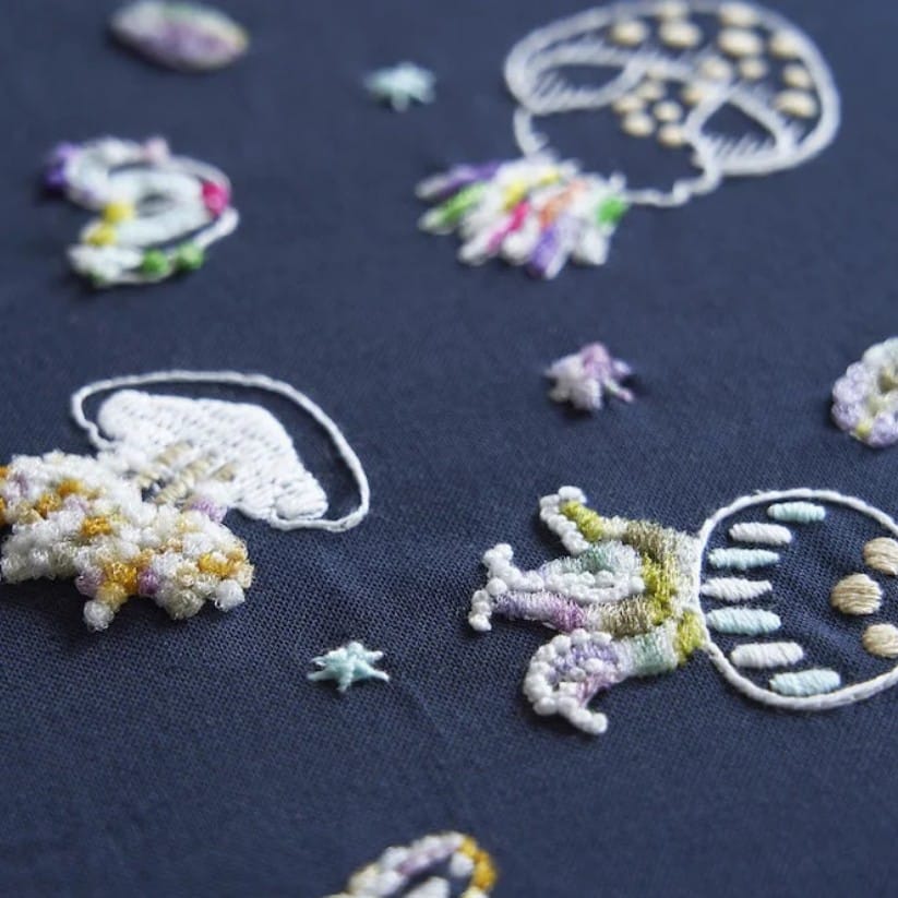 In addition to a Mini Ototoito Thread Set that lets you try out each of these textures, we have three gorgeous kits with designs by Atsumi (one of our favourite embroidery artists) that let you show each one off to its best advantage. Embroidering a cat is the perfect use for Mofumofu threads, and the Mofumofu Kit puts this soft, fluffy, and cuddly embroidery thread to perfect use doing just that! The finished product is so textured and sweet it almost feels like the real thing. Likewise, the Kirakira Kit and Fukafuka Kit put their threads to good use to make irridescent sea creatures and beautifully shiny bugs. Watch the magic of the shimmery Kirakira yarn as it catches the light and shimmers, mimicking the bioluminescence of a jellyfish. And soft, plush Fukafuka yarn is perfect for making well-filled shapes and adding a bit of dimension, with a super lucid, shiny finish, just like the beetles and butterflies in this kit. Each kit comes with three of the threads the kit is named for and three no. 25 threads, along with needles for each thread weight, a threader, sampler fabric, and printed fabric. These kits are either on preorder or on the way, so order now or sign up to get notified when they arrive!